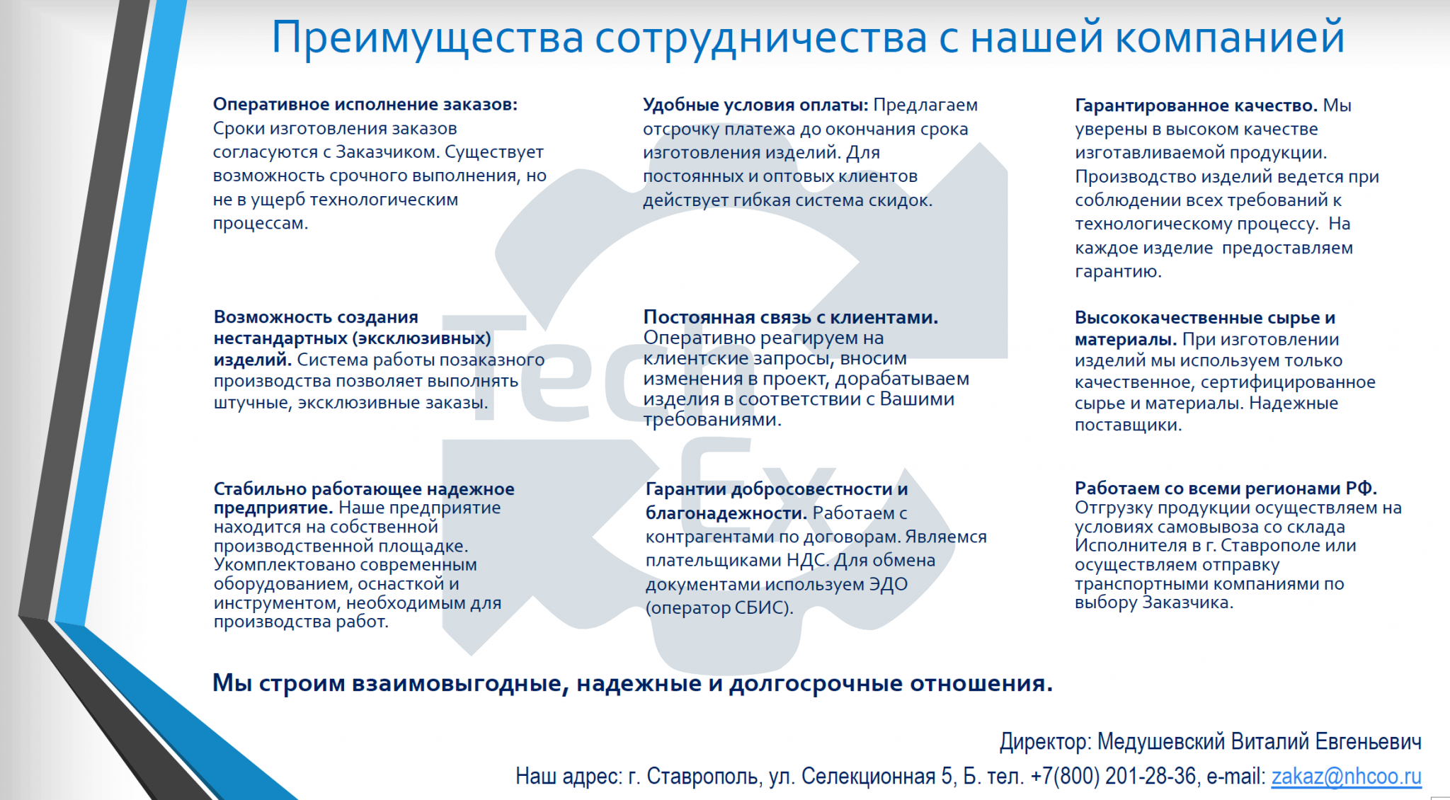 - Для заказчиков: единое место, где можно найти надежных подрядчиков, получить детали, оборудование и услуги, не теряя время на долгие поиски.